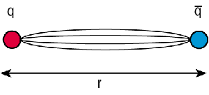 Fig. 1. In quantum chromodynamics, a confining flux tube forms between distant static charges. This leads to quark confinement – the potential energy between (in this case) a quark and an antiquark increases linearly with the distance between them.See Here.