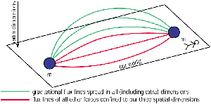 Turning back to gravity, the extra-dimensions model stems from theoretical research into (mem)brane theories, the multidimensional successors to string theories (April 1999 p13). One remarkable property of these models is that they show that it is quite natural and consistent for electromagnetism, the weak force and the inter-quark force to be confined to a brane while gravity acts in a larger number of spatial dimensions.