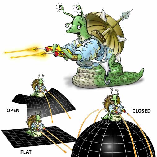The amount of dark matter and energy in the universe plays a crucial role in determining the geometry of space. If the density of matter and energy in the universe is less than the critical density, then space is open and negatively curved like the surface of a saddle See my post on this here