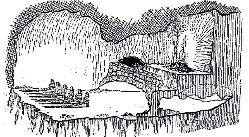 And now, I said, let me show in a figure how far our nature is enlightened or unenlightened: –Behold! human beings living in a underground den, which has a mouth open towards the light and reaching all along the den; here they have been from their childhood, and have their legs and necks chained so that they cannot move, and can only see before them, being prevented by the chains from turning round their heads. Above and behind them a fire is blazing at a distance, and between the fire and the prisoners there is a raised way; and you will see, if you look, a low wall built along the way, like the screen which marionette players have in front of them, over which they show the puppets.