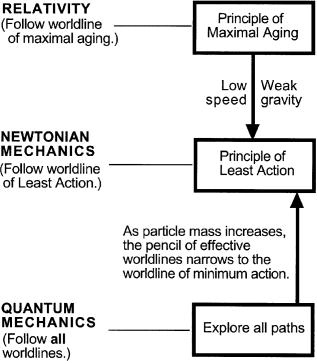 Fig. 1. Story line showing the principle of least action sandwiched between relativity and quantum mechanics See A call to action