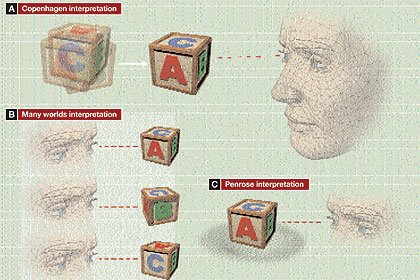 (and What It Means)A: According to the orthodox view of quantum mechanics, called the Copenhagen interpretation, a system (represented here by a child’s block) does not occupy a definite state or location until it is measured. Before then it is just a blur of overlapping possibilities.