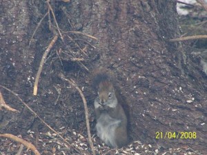 One thing you can be assured of is the healthy population of squirrels. They maintain their occupation over the food while some of the birds themselves feed.