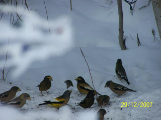 The Varied Thrust and the Nut hatch are new for us to see around the feeders. The “Evening Grosbeaks” still pay us a visit on a regular basis.