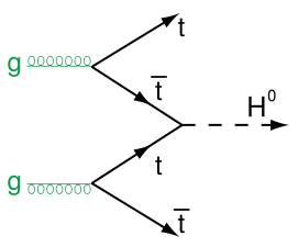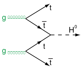 One possible way the Higgs boson might be produced at the Large Hadron Collider.