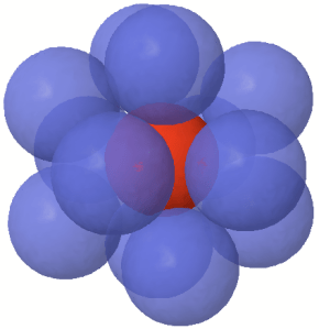 Each orange (sphere) in the first layer of such a stack is surrounded by six others to form a hexagonal, honeycomb lattice, while the second layer is built by placing the spheres above the “hollows” in the first layer. The third layer can be placed either directly above the first (producing a hexagonal close-packed lattice structure) or offset by one hollow (producing a face-centred cubic lattice). In both cases, 74% of the total volume of the stack is filled — and Hales showed that this density cannot be bettered…..