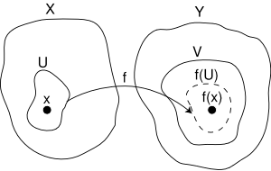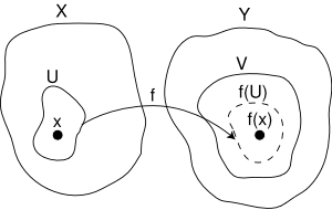 In a metric space, it is equivalent to consider the neighbourhood system of open balls centered at x and f(x) instead of all neighborhoods. This leads to the standard ε-δ definition of a continuous function from real analysis, which says roughly that a function is continuous if all points close to x map to points close to f(x). This only really makes sense in a metric space, however, which has a notion of distance.