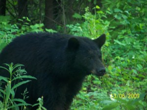 That is outside our patio window in our dining room. Some of you might have remembered our “earlier visitor last year” who had thought to check inside to see what was happening while my wife stood around the corner to snap the picture. Quite the contrast between this black bear and the one last year.