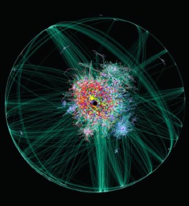 Wikipedia contains numerous entries about science; the links between which are shown here; but scientists still seem reluctant to contribute to the site. (Credit-Chris Harrison, Carnegie Mellon University)Doing Science in the Open