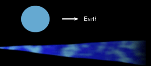 M87’s Energetic Jet., HST image. The blue light from the jet emerging from the bright AGN core, towards the lower right, is due to synchrotron radiation.