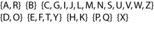 Equivalence classes of the English alphabet in uppercase sans-serif font (Myriad); left – homeomorphism, right – homotopy equivalence