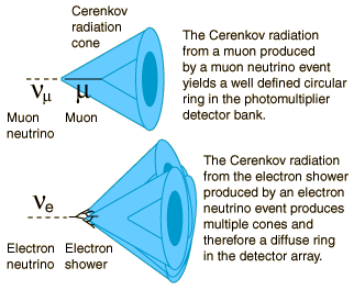 | An early set of experiments with a facility called the solar neutrino telescope, measured the rate of neutrino emission from the sun at only one third of the expected flux. Often referred to as the Solar Neutrino Problem, this deficiency of neutrinos has been difficult to explain. Recent results from the Sudbury Neutrino Observatory suggest that a fraction of the electron neutrinos produced by the sun are transformed into muon neutrinos on the way to the earth. The observations at Sudbury are consistent with the solar models of neutrino flux assuming that this “neutrino oscillation” is responsible for observation of neutrinos other than electron neutrinos. See: Detection of Neutrinos |