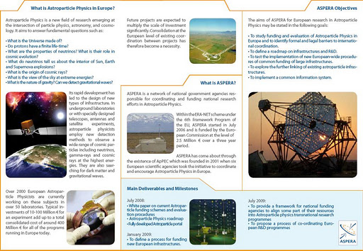 ASPERA is a network of national government agencies responsible for coordinating and funding national research efforts in Astroparticle Physics