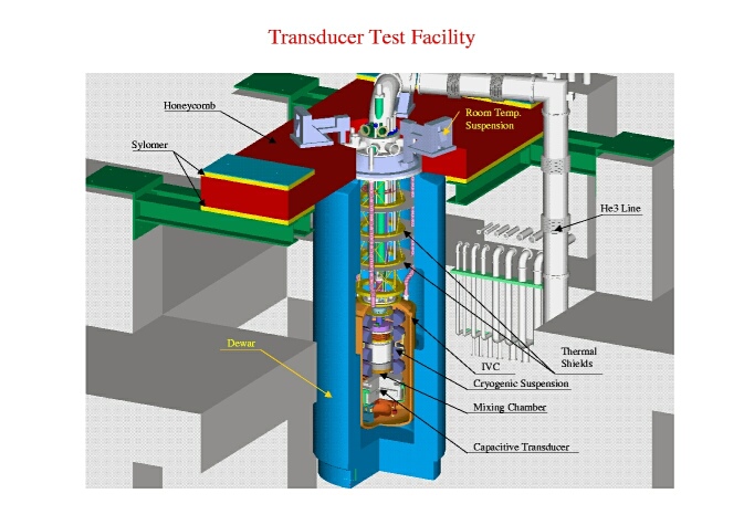 | 1. Side view of the AURIGA suspension for run2. The columns and the bar are clearly visible. Also the liquid Helium vessel and the thermal shields, which come unchanged from run1. |