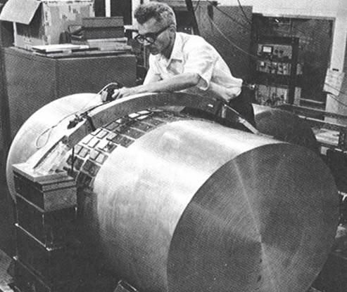 A simple device to detect the expected wave motion is called a Weber bar – a large, solid bar of metal isolated from outside vibrations. This type of instrument was the first type of gravitational-wave detector. Strains in space due to an incident gravitational wave excite the bar’s resonant frequency and could thus be amplified to detectable levels. Conceivably, a nearby supernova might be strong enough to be seen without resonant amplification. Modern forms of the Weber bar are still operated, cryogenically cooled, with superconducting quantum interference devices to detect vibration (see for example, ALLEGRO). Weber bars are not sensitive enough to detect anything but extremely powerful gravitational waves.[1]