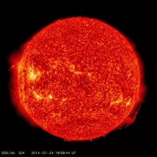 Published on Jul 21, 2014A long arch of plasma (called a prominence) was pulled this way and that by magnetic forces for a week before it finally dissipated (July 10-16, 2014). This close up was captured in extreme ultraviolet light. The Earth scale in the lower left corner gives one a sense of the length of the prominence. This one held itself together for quite a long time, as these things go. Credit: Solar Dynamics Observatory/NASA.