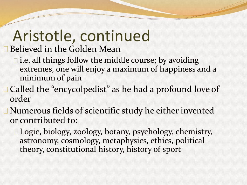 In the Eudemian Ethics, Aristotle writes on the virtues. Aristotle’s theory on virtue ethics is one that does not see a person’s actions as a reflection of their ethics but rather looks into the character of a person as the reason behind their ethics. His constant phrase is, “… is the Middle state between …”. His psychology of the soul and its virtues is based on the golden mean between the extremes. In the Politics, Aristotle criticizes the Spartan Polity by critiquing the disproportionate elements of the constitution; e.g., they trained the men and not the women, and they trained for war but not peace. This disharmony produced difficulties which he elaborates on in his work. See also the discussion in the Nicomachean Ethics of the golden mean, and Aristotelian ethics in general.-http://en.wikipedia.org/wiki/Golden_mean_(philosophy)#Aristotle