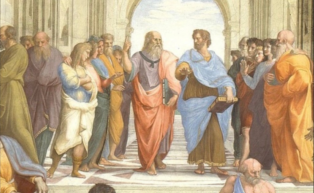 A image of Plato pointing towards the heavens, demonstrating the One. This is taken from Raphael’s painting, “The School of Athens
