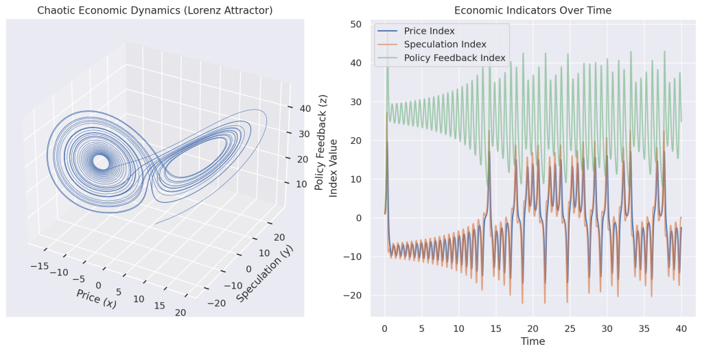 z → Policy feedback or regulatory force The paths never repeat, yet they form a coherent shape—a hallmark of chaos.