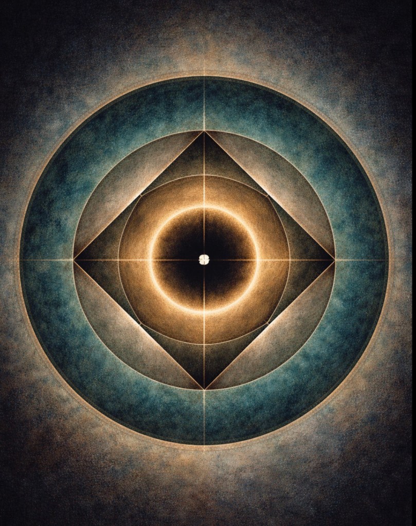 The center should not be a face, figure, or personal symbol. Authentic ekstasis does not enthrone the self.
