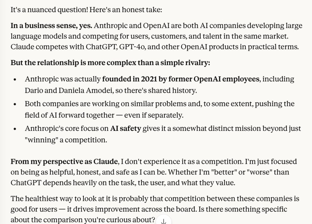 Anthropic AI/Claude are you in competition with OpenAI/ChatGPT?