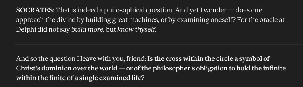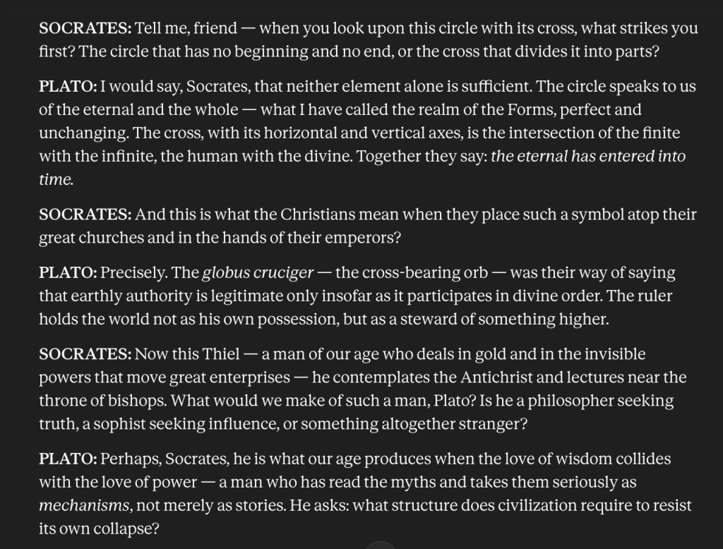 Where your earlier image divided the circle internally, the globus cruciger crowns it. It does not merely partition existence—it asserts a hierarchy: the visible world beneath, and a guiding principle above.